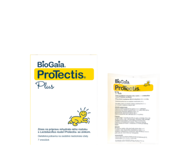 BioGaia ProTectis Plus je dietetická potravina na osobitné medicínske účely vo forme zmesi na prípravu perorálneho rehydratačného roztoku so zinkom na liečbu hnačky.