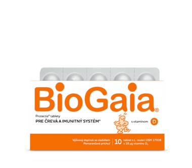 BioGaia Protectis tablety s vitamínom D sú doplnok stravy, ktorý obsahuje kombináciu baktérií mliečneho kvasenia (L. reuteri Protectis) a vitamínu D3.