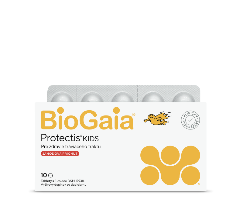 BioGaia Protectis tablety s jahodovou príchuťou sú potravinový doplnok s náhradnými sladidlami obsahujúci živé aktívne baktérie Limosilactobacillus reuteri Protectis - ideálne riešenie pre starostlivosť o tráviaci systém.